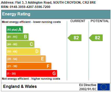This is a beautifully presented Sanderstead Heights apartment is situated to the rear of the development with stunning views over London on the first floor with just one flight of stairs. The apartment has the benefit of an ensuite shower room to the master bedroom, a 20'2 x 12'6 lounge/dining room with a Juliette balcony. EPC Rating B. Council Tax Band E. 90 years remaining on lease. £288 (£144 paid twice a year). Maintenance £2570 yearly.